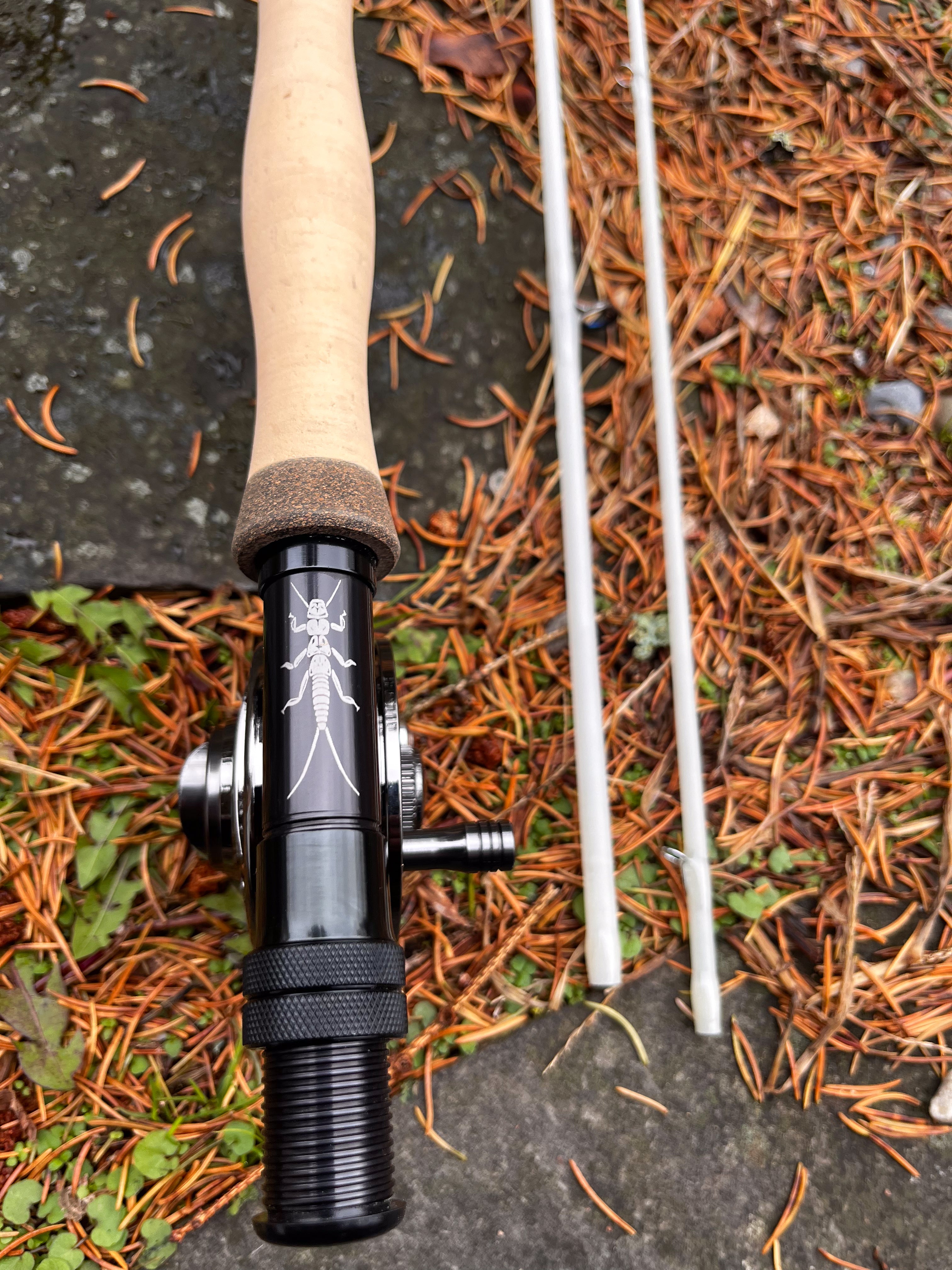 This rod features a special limited edition stone fly engraving, Blue Zircon Titanium Carbide Guide. We also outfitted this with our special ERGO Grip.