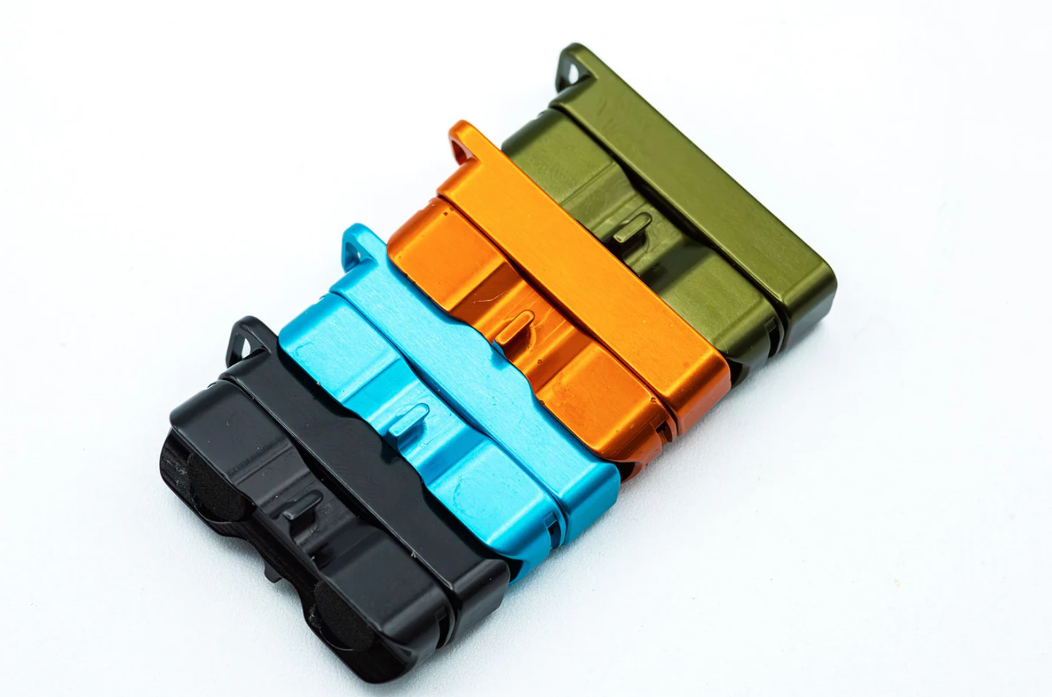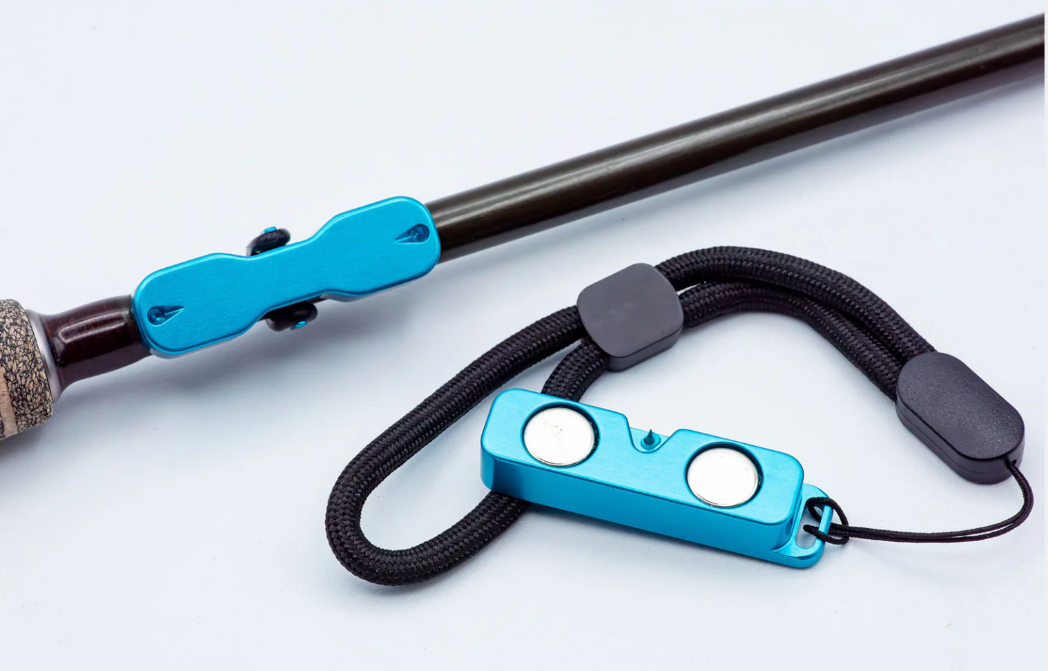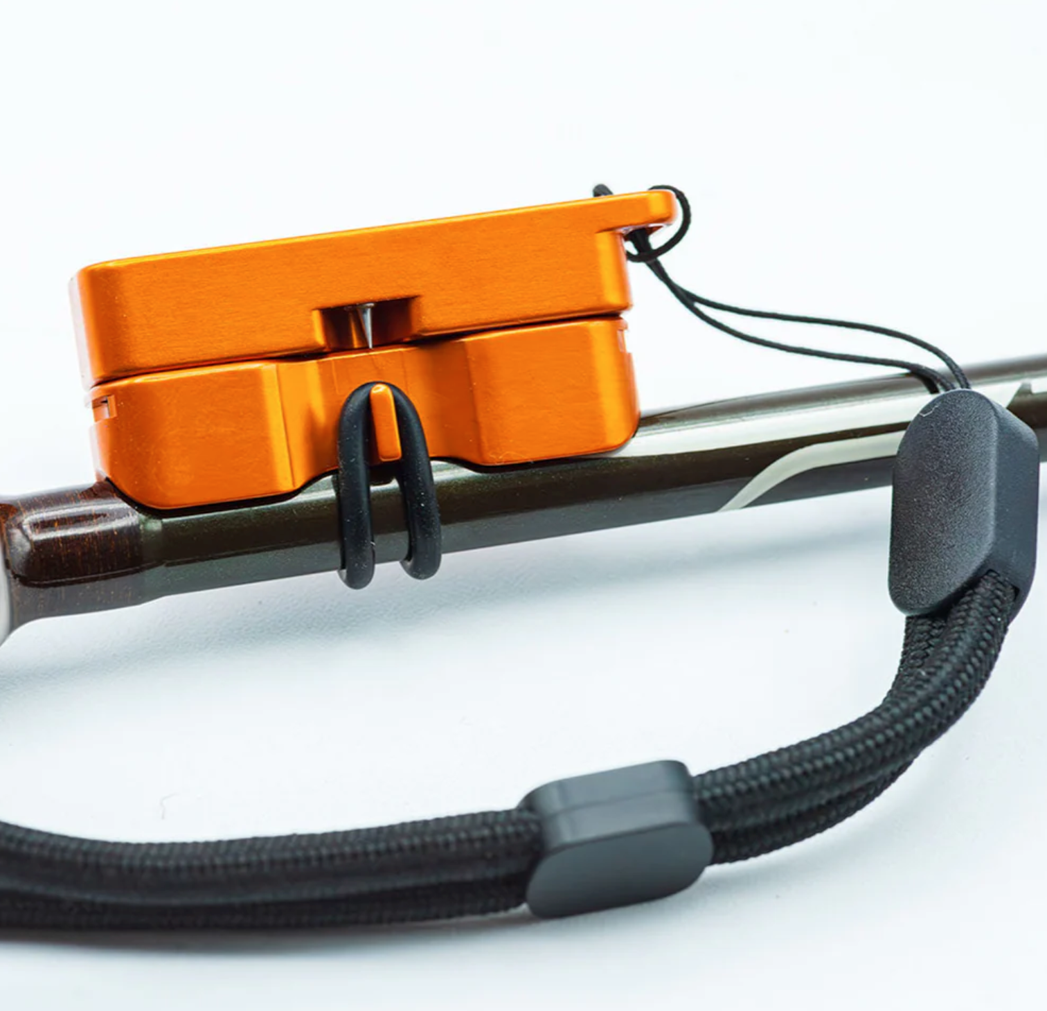 The Rod Rack is a two-part system designed to hold your fly rod securely during fly changes, fish releases, snack time, and any other situation where you might need to set your rod down for a minute. The base plate securely attaches to the butt of your rod with a strong rubber clasp, while the top magnet is easily attached to your waders, pack, or vest. Get them close, and click, your rod is secure.
