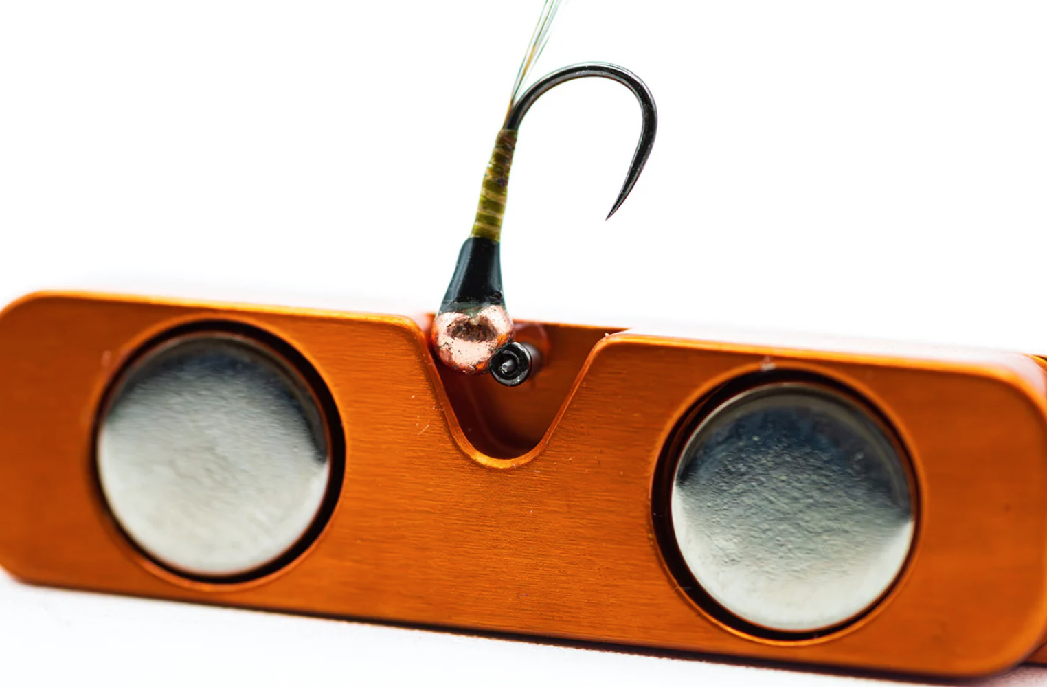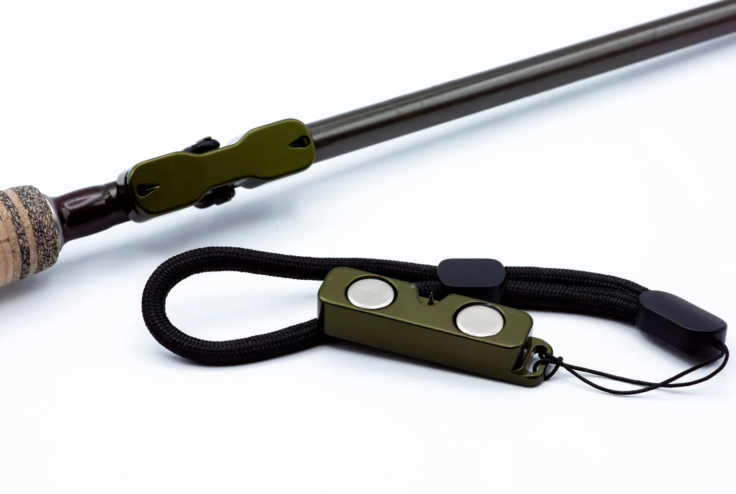 The Rod Rack also features a line threading feature that magnetically holds your flies (even small ones!) on a groove to make threading the eye quick and easy. An eye cleaning needle is available to clear clogged hook eyes, and a hook keeper feature gives you a convenient spot to attach your flies, lures and hooks.