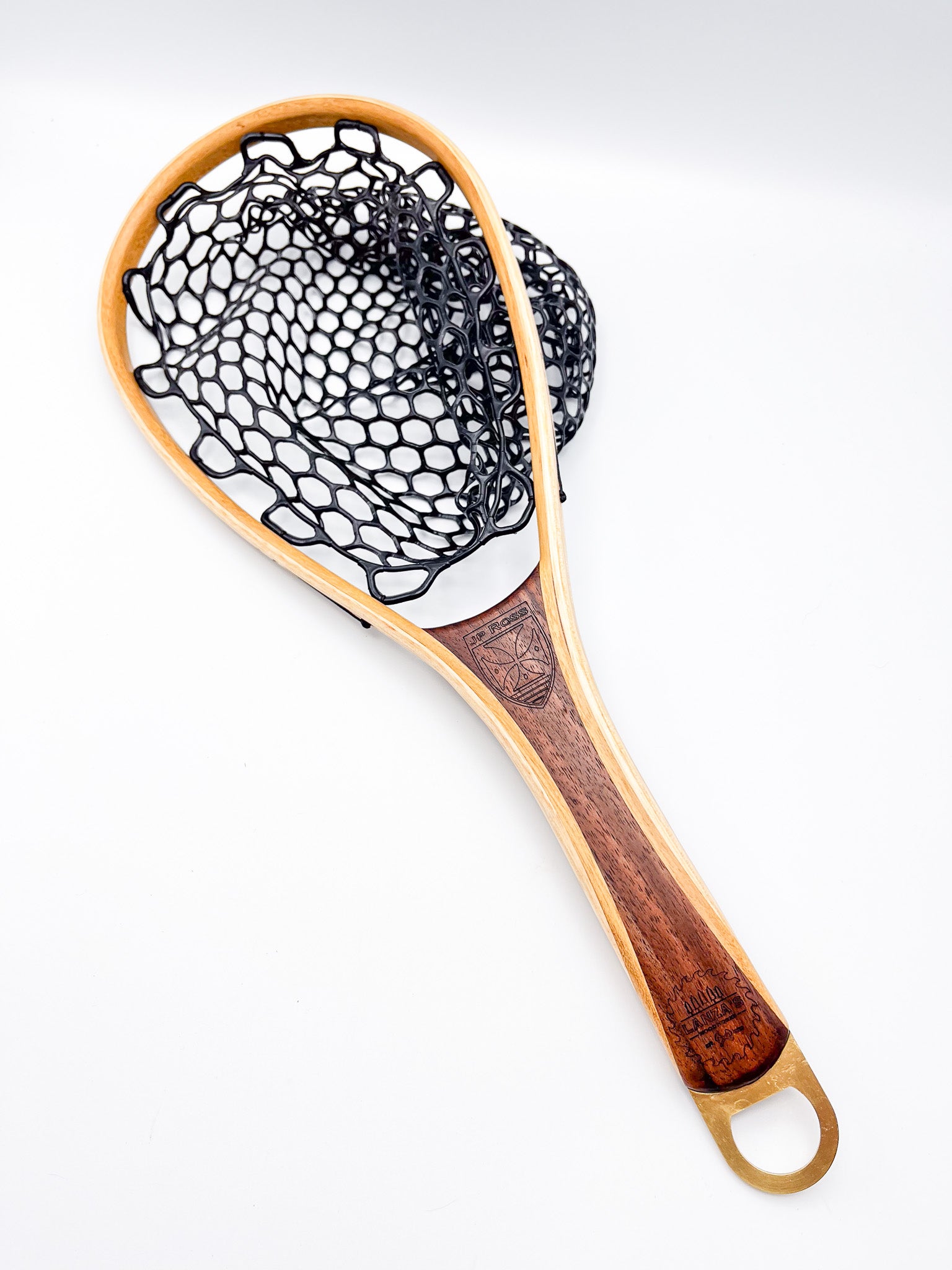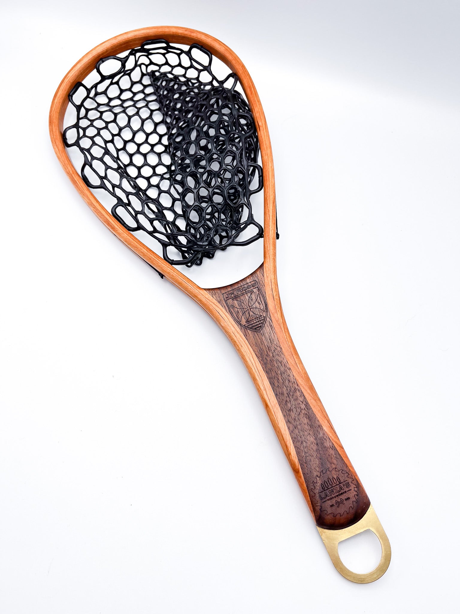 JP Ross demands excellence in net design, particularly for small stream work where precision matters. This handcrafted net by Anthony Lanza of Lanza Woodworks exemplifies that standard. Small nets offer distinct advantages: they're nimble in tight quarters, make impressive catches shine in photographs, and eliminate the bulk of larger gear when bushwhacking remote creeks. When you land a beautiful fish, a proper net lets you celebrate the moment while keeping it safely wet and protected. Constructed from locally sourced wood with Anthony's signature flawless joinery, this net prioritizes fish welfare above all. The silicone net bag—slippery and gentle—safeguards delicate scales and protective slime coating far better than traditional cotton or nylon alternatives. An integrated loop and bottle opener add streamside utility. Built for anglers who understand that respecting the fish begins with the right tools.